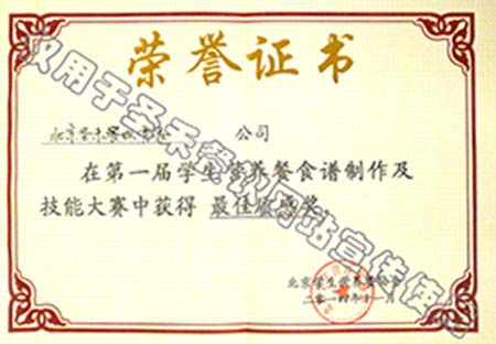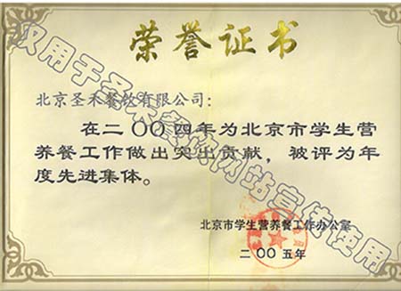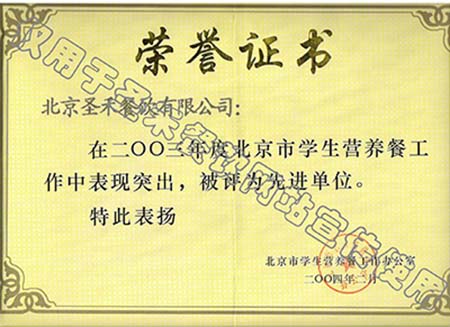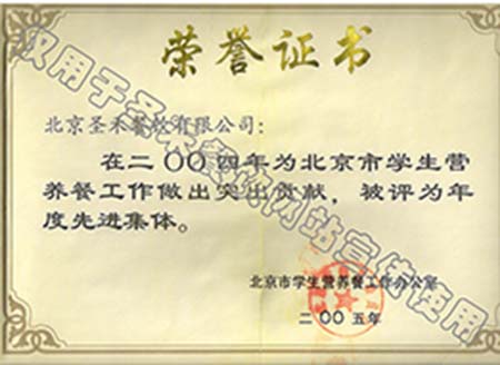 • 2004年北京市学生营养餐工作年度先进单位