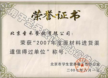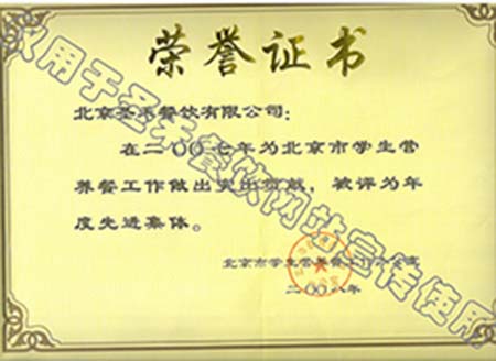 • 2007年北京市学生营养餐工作年度先进单位