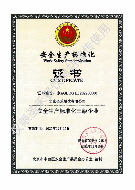 • 安全生产标准化三级企业认证