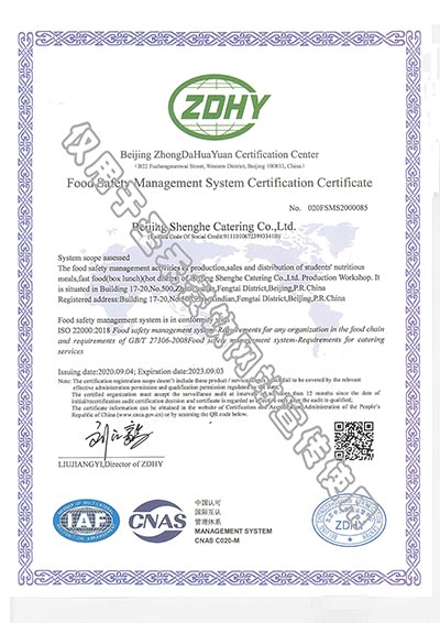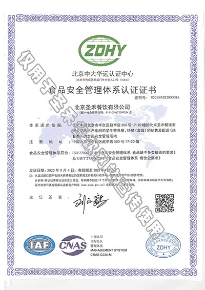 • 学生营养送餐HACCP管理体系验收证书