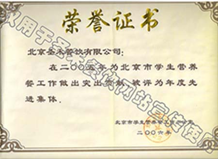 • 2006年北京市学生营养餐工作年度先进单位
