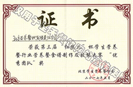 • 第三届“红孩儿”杯学生营养餐行业营养餐食谱制作及技能大赛优秀团队奖